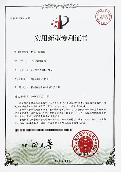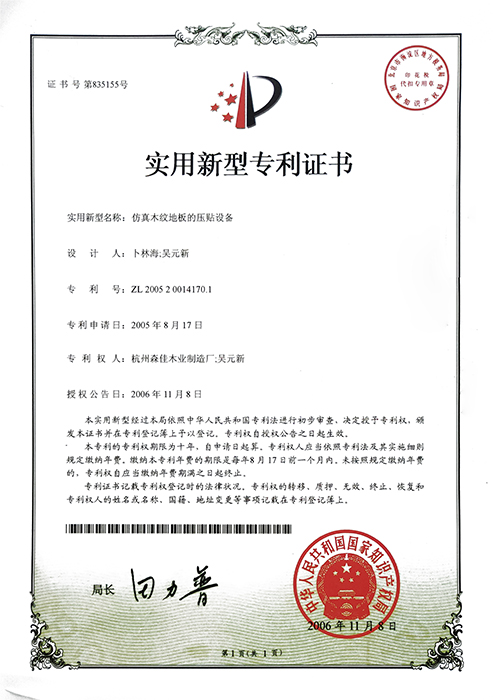 實用新型專利證書